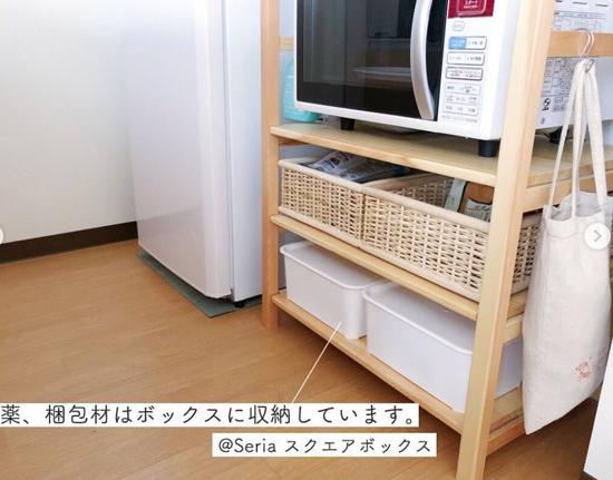对于之前说到的药箱收纳,可以放到架子最底部。