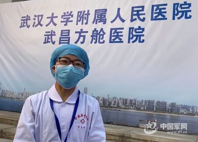 郑媛媛在武汉大学附属人民医院武昌方舱医院留影。
