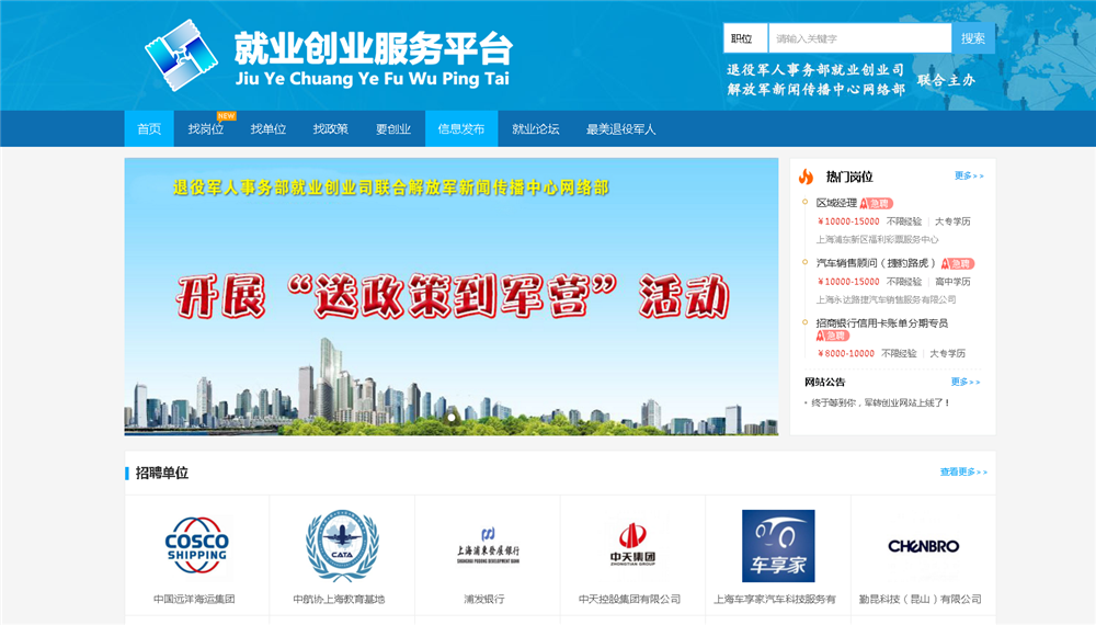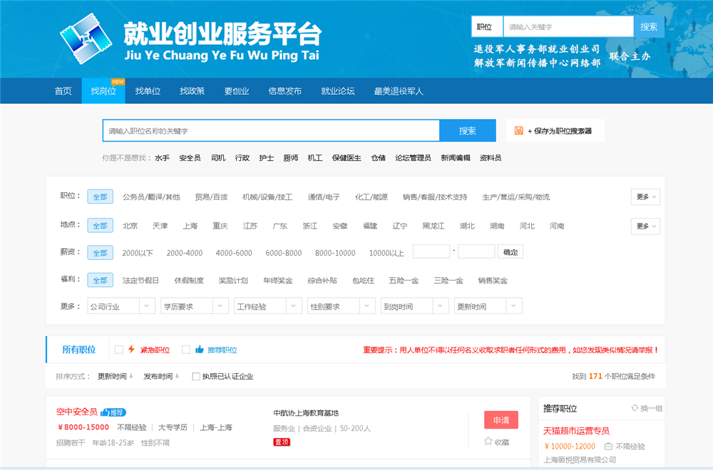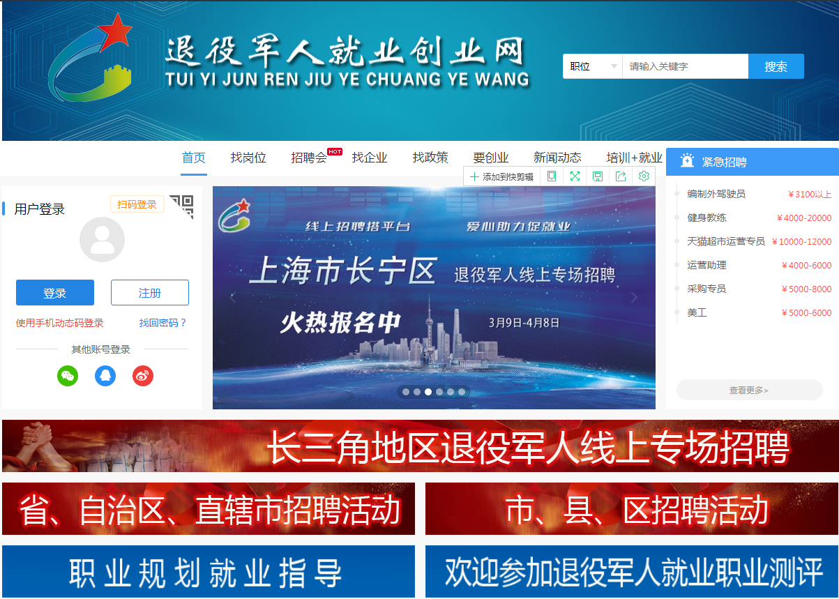 通过浏览中国军网,可进入退役军人就业创业网查询岗位信息、投递简历、了解相关政策、进行互动交流等,实现线上寻岗,精准对接自己满意的企业单位。