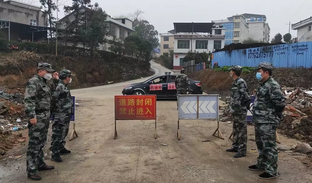 自采取隔断措施以来,湖南涟源市的各个卡点出现了身穿红马甲的民兵志愿者和退役军人志愿者。